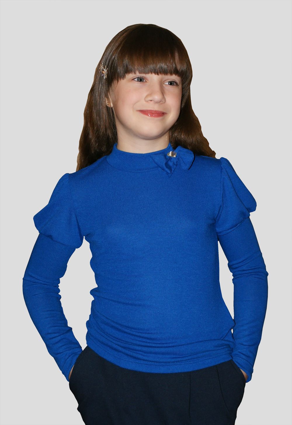 Джемпер из мягкого трикотажа, как для школы так и для повседневного спроса. Воротник-стойка украшен бантом с кристаллом. Удобный силуэт позволит комфортно себя чувствовать.